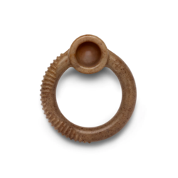 Ten okrągły gryzak, aromatyzowany w 100% prawdziwym bekonem, ma stymulujące wypustki, które pomagają utrzymać zęby psa w czystości. Sprytna kieszeń Ringu utrzymuje gryzak pod takim kątem, który ułatwia trzymanie go w łapce.