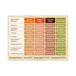 Szukasz pysznej przekąski treningowej, która jest także zdrowa dla twojego psa? Soopa Healthy Bites są bezzbożowe, hipoalergiczne i wykonane z naturalnych składników najwyższej jakości (human grade). Te małe kawałki wielkości kęsa doskonale nadają się do treningu, pakowane są w mocną folię strunową i poręczne pudełko, dzięki czemu łatwo go używać również w podróży! Są dostępne w ośmiu świetnych smakach. Proste, smaczne, pożywne i najlepsze. Psy je uwielbiają!